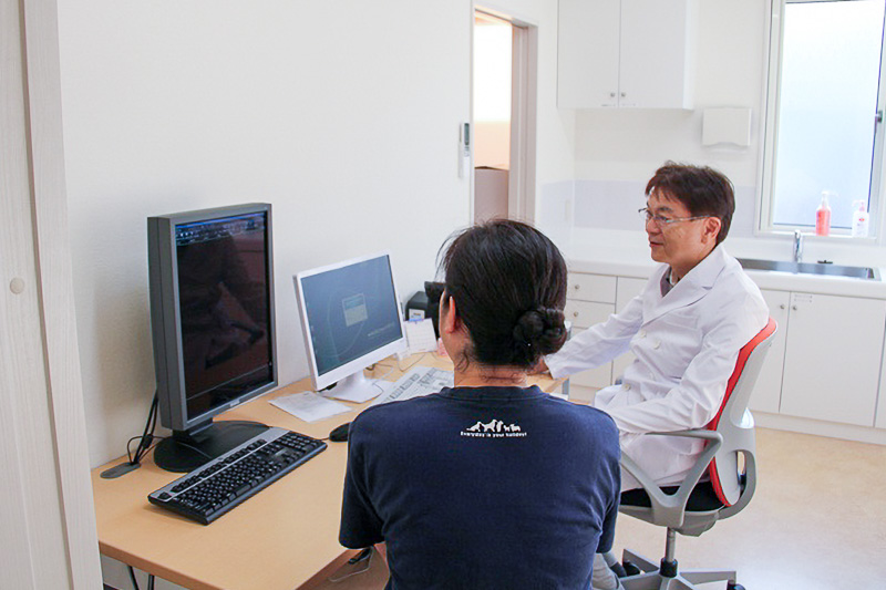 丁寧な問診と診察を心がけています。的確な治療方針決定のために非常に重要です。